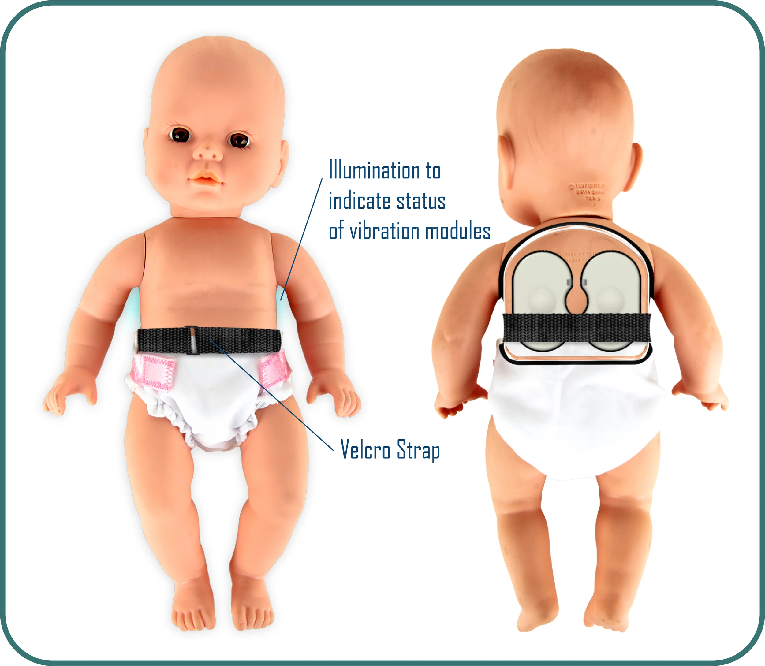 • The vibrators are usually wrapped to the back of a baby which ranges in age from 0-1 years old; up to four at a time, depending on the size of the baby.